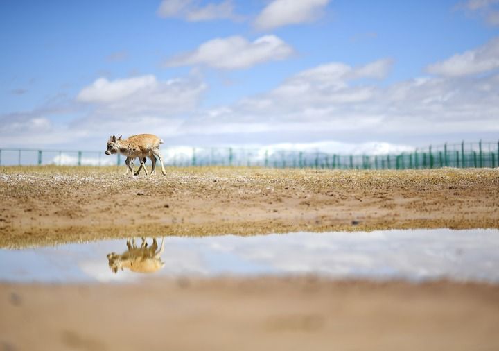 藏羚羊在可可西里國家級自然保護(hù)區(qū)索南達(dá)杰保護(hù)站野生動(dòng)物救助中心活動(dòng)(2023年5月30日攝)。新華社記者 薛玉斌 攝