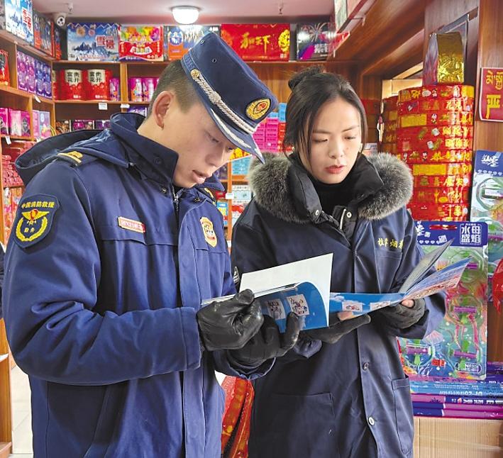 拉薩市消防救援支隊(duì)宣傳員走進(jìn)煙花爆竹經(jīng)銷(xiāo)點(diǎn),為店員科普易燃易爆場(chǎng)所消防安全知識(shí)。通訊員 肖暄 攝