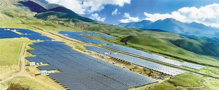 在措美縣城東、西兩側(cè)的山坡上,一排排光伏發(fā)電板在陽光的照射下熠熠生輝。措美縣全年日照強(qiáng)、降水少,年均日照時數(shù)超2800小時,擁有豐富的太陽能資源。近年來,措美縣大力發(fā)展光伏發(fā)電產(chǎn)業(yè),實(shí)現(xiàn)綠色低碳發(fā)展,讓高原變身“綠電藍(lán)?!?。截至目前,措美縣共建設(shè)有光伏電站3座,總裝機(jī)容量達(dá)到70MW。自2017年第一座光伏電站并網(wǎng)發(fā)電至2024年底,累計發(fā)電量超3.4億千瓦時,相當(dāng)于節(jié)約標(biāo)準(zhǔn)煤約4.2萬噸,減少二氧化碳排放約33.9萬噸。