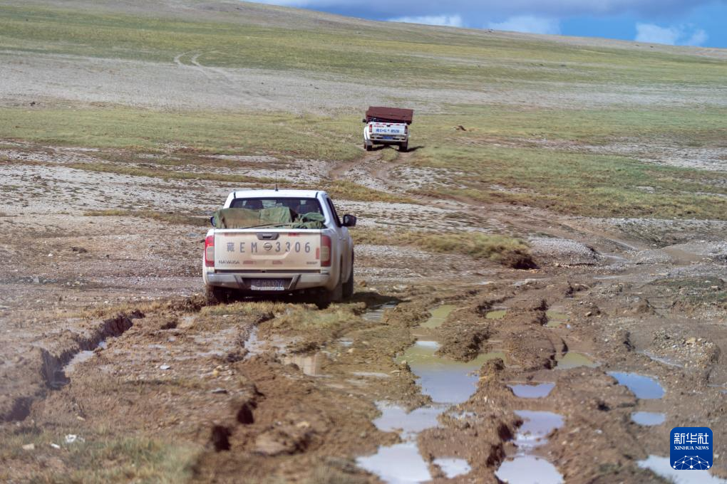 措羅木管理站的野生動(dòng)物管護(hù)員驅(qū)車前往無(wú)人區(qū)深處的森隆藏布河畔(7月14日攝)。新華社記者 姜帆 攝