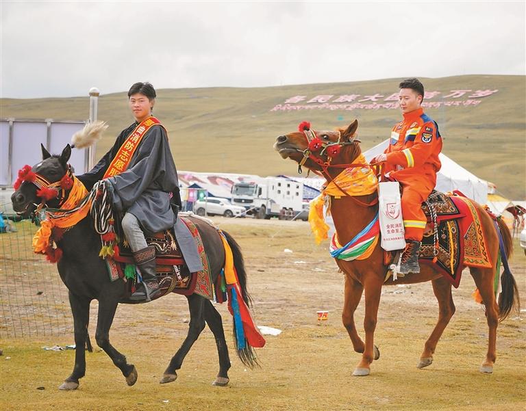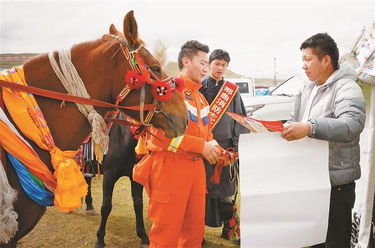 在那曲市廣闊的賽馬場上,一支特殊的“馬背上的消防宣傳服務(wù)隊(duì)”近日成為亮麗風(fēng)景。為保障2025年那曲市恰青賽馬節(jié)期間消防安全,那曲市消防救援支隊(duì)創(chuàng)新工作方法,聯(lián)合那曲市馬術(shù)協(xié)會(huì)工作人員與消防志愿者,騎馬深入牧民帳篷營地及賽事區(qū)域,將消防安全知識送至每一位群眾身邊。