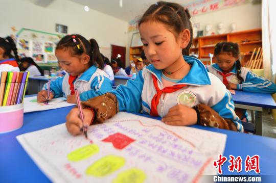 9月22日,西藏拉薩尼木縣一小學(xué)學(xué)生在上美術(shù)課?!〗w波 攝
