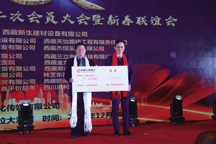 活動尾聲,西藏湖北商會現(xiàn)場為山南市東輝中學(xué)捐贈教育援藏獎勵基金10萬元,用以資助山南市教育事業(yè)的發(fā)展。