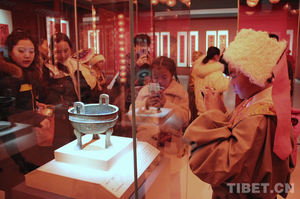 圖為“萌娃”們參觀“瑞彩平安——2020新春展”中的周代“者生”文鼎 攝影:李元梅