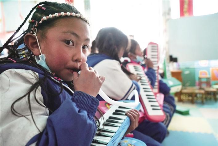 口風(fēng)琴擁有良好的和聲能力,廣泛應(yīng)用于各類音樂中。但是,對于果組小學(xué)的孩子們來說,這是他們第一次見到口風(fēng)琴。布扎西是該小學(xué)三年級的一名小學(xué)生,他是校園“小歌星”,每年六一兒童節(jié)學(xué)校舉行文藝匯演時,他都要演唱自己的拿手歌曲——《我的家鄉(xiāng)》。第一次見到口風(fēng)琴,布扎西非常開心:“謝謝柏雪老師送給我們的禮物,我以后會好好學(xué)習(xí),爭取早日吹奏《小星星》!”