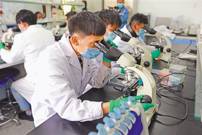 圖為西藏職業(yè)技術(shù)學(xué)院2020屆赴區(qū)外企業(yè)就業(yè)的畢業(yè)生在實驗室進行崗前培訓(xùn)。記者 潘璐 王莉 攝