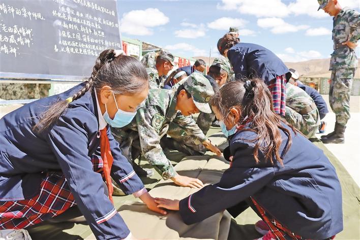 近日,西藏軍區(qū)某合成旅組織開展“軍營(yíng)開放日”主題活動(dòng),邀請(qǐng)駐地小學(xué)生參觀軍營(yíng)。開放日當(dāng)天,官兵們分小組帶領(lǐng)同學(xué)們參觀榮譽(yù)室,體驗(yàn)整理內(nèi)務(wù)等,并為同學(xué)們上了一堂精彩的國防教育課,進(jìn)一步增強(qiáng)同學(xué)們的國防意識(shí)。