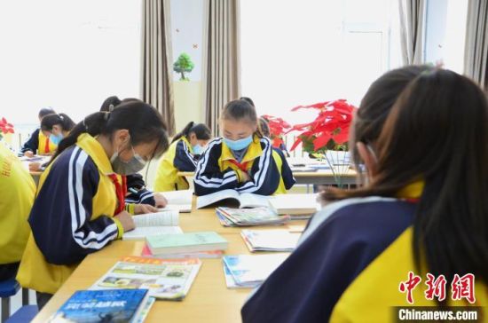 圖為化隆縣第一小學(xué)的學(xué)生們?cè)陂営[室讀書?!◆?shù)り?yáng) 攝