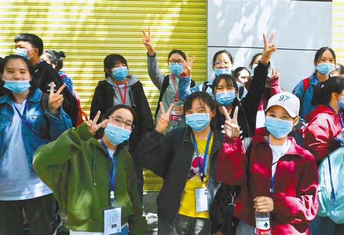 圖為7日上午,首場考試結(jié)束,考生走出考場,為自己加油。記者 李洲 洛桑 次旺 唐斌 攝影報(bào)道