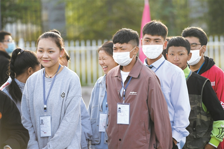 當日上午8時,考生統(tǒng)一乘坐拉薩市公交公司高考愛心接送車來到拉薩中學考點。在疫情防控常態(tài)化背景下,考生手拿準考證、身份證,戴著口罩,排隊測量體溫之后,有序進入考場。為應對突發(fā)狀況,考點外設置了隔離區(qū),并有醫(yī)療人員駐守。參加高考的考生之間也互相加油打氣,考生拉巴頓珠說:“祝愿大家都能好好發(fā)揮,考上自己心儀的學校?!?/p>