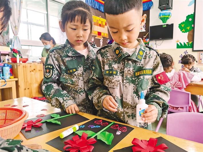 圖為教師節(jié)來臨之際,西藏軍區(qū)機關(guān)幼兒園的學生為老師制作節(jié)日祝??ㄆ?。 [詳細]