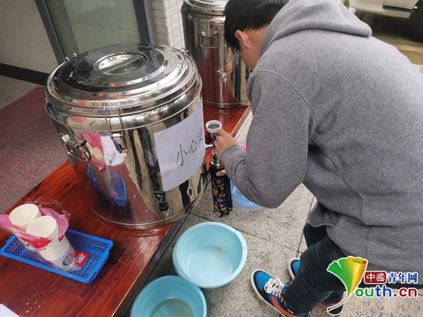 圖為學(xué)生正在飲用“大鍋湯”。中國青年網(wǎng)通訊員 沈萌萍 攝