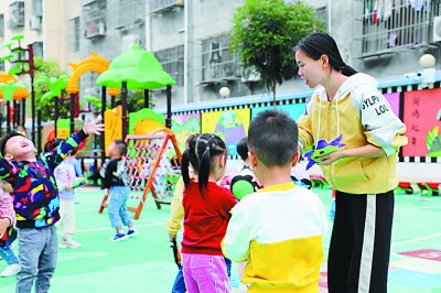 圖為鷹潭市高新區(qū)社會(huì)事業(yè)局高級(jí)教師在小英小學(xué)和小朋友們一起開主題班會(huì)。曾志凡攝/光明圖片