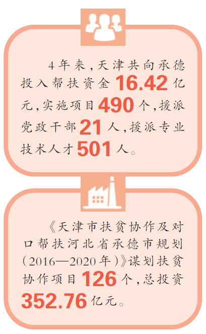 在東西部扶貧協(xié)作背景下,天津與承德攜手,共同編制實施《天津市扶貧協(xié)作及對口幫扶河北省承德市規(guī)劃(2016—2020年)》,謀劃扶貧協(xié)作項目126個,總投資352.76億元。