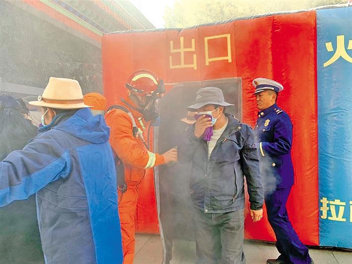 拉薩市消防救援部門組織市民開(kāi)展火災(zāi)疏散逃生應(yīng)急演練。