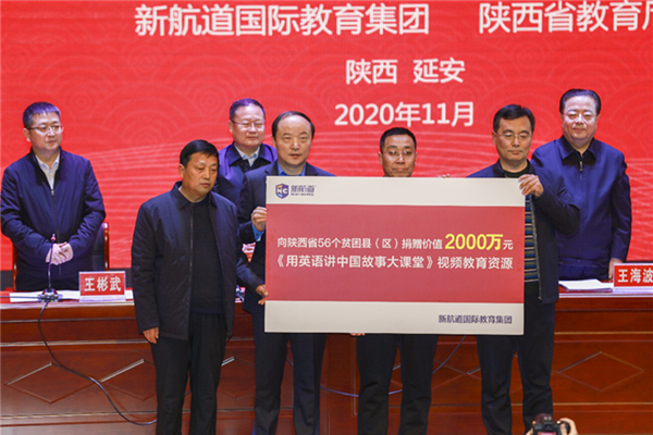 2020年是脫貧攻堅的決戰(zhàn)決勝之年。繼陜西省56個貧困縣(區(qū))全部實(shí)現(xiàn)“脫貧摘帽”之后,又收到一份教育大禮——由新航道國際教育集團(tuán)捐贈的價值2000萬元的《用英語講中國故事》視頻課程。當(dāng)天,陜西省教育廳副廳長王海波與新航道國際教育集團(tuán)董事長兼CEO胡敏共同出席在宜川中學(xué)舉行的捐贈儀式,開啟新航道國際教育集團(tuán)助力陜西教育扶貧的新篇章。