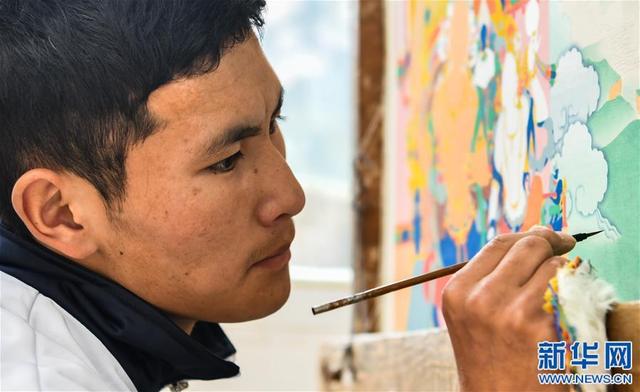 在西藏昌都市卡若區(qū)嘎瑪鄉(xiāng)的民族手工藝培訓基地,學員在學習畫唐卡(10月3日攝)。新華社記者 晉美多吉 攝