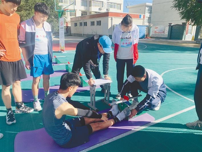 “全民健身·活力中國”國家體育鍛煉標(biāo)準(zhǔn)達(dá)標(biāo)測驗(yàn)賽日喀則站活動(dòng)中,學(xué)生在進(jìn)行坐位體前屈測試。記者 潘璐 攝