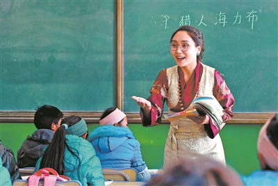因為熱愛,所以專注。青海省玉樹藏族自治州囊謙縣東壩鄉(xiāng)寄宿學校教師桑丁卓瑪,精心準備每一堂課,認真上好每一堂課,受到學生的喜愛。這是她在為五年級學生上漢語文課。