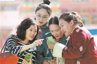 下課了,桑丁卓瑪(左二)和學員一起,與授課專家、北京市第十八中學英語高級教師谷月鳳(左一)互加微信,以便培訓結束后還能夠繼續(xù)向專家請教、與專家交流。