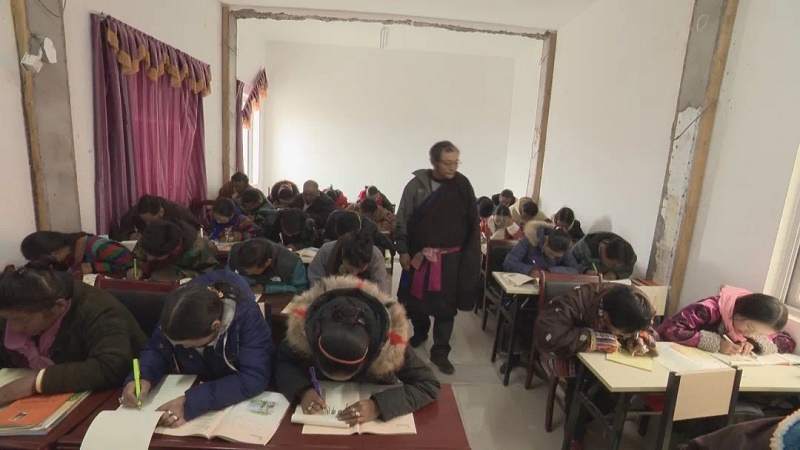 帕那鎮(zhèn)一村宣講員嘎達(dá)耐心的用通俗易懂的本土藏語(yǔ)給這些大齡學(xué)生講漢語(yǔ)拼音課,課堂上有20名來(lái)自附近的牧民群眾,他們不時(shí)低頭做筆記、不時(shí)舉手提問(wèn),生怕錯(cuò)過(guò)每一個(gè)字節(jié)。60歲的次吉是這里年齡最大的學(xué)員,一年中她最期盼的事情就是參加“夜?!睂W(xué)習(xí)?!拔倚r(shí)候條件不好,沒(méi)有機(jī)會(huì)接受教育,文化水平低,現(xiàn)在條件好了,就來(lái)夜校學(xué)習(xí),老師講得通俗易懂,我感覺(jué)收獲很多?!贝渭獙?duì)說(shuō)。