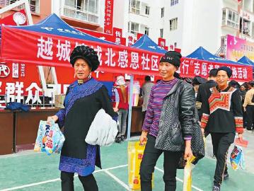 越西縣城北感恩社區(qū)舉辦的青春扶貧超市“互益行”積分行動。