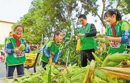 蘭州市紅山根小學(xué)的學(xué)生們?cè)谪S收的喜悅中,感受到了糧食的來之不易。
