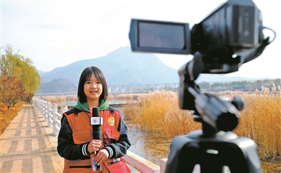 “金秋時(shí)節(jié),聽(tīng)說(shuō)清水河又飛來(lái)了白天鵝,我們特意來(lái)到河邊探訪一下……”太師屯鎮(zhèn)中心小學(xué)校園電視臺(tái)小記者實(shí)地采訪、精心錄制,專題節(jié)目《守護(hù)天鵝》通過(guò)校園電視臺(tái)向師生及家長(zhǎng)播出。樊世剛 攝