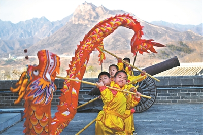 北京市密云區(qū)古北口鎮(zhèn)中心小學(xué)結(jié)合戍邊文化、地域文化,成立“舞龍”社團(tuán)。喜愛(ài)傳統(tǒng)舞龍文化的學(xué)生登上長(zhǎng)城,舞出“堅(jiān)毅”精神,舞出時(shí)代風(fēng)采,舞出民族自豪。樊世剛 攝