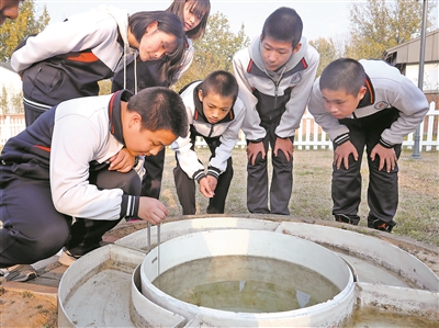水庫(kù)地區(qū)的降水量怎樣?蒸發(fā)量如何?這些都是水庫(kù)中學(xué)學(xué)生關(guān)注的問(wèn)題,大家要在課題研究中讀懂家鄉(xiāng)的山水。瞧,學(xué)生們那股專注勁兒,儼然水環(huán)境監(jiān)測(cè)的“小專家”。樊世剛 攝