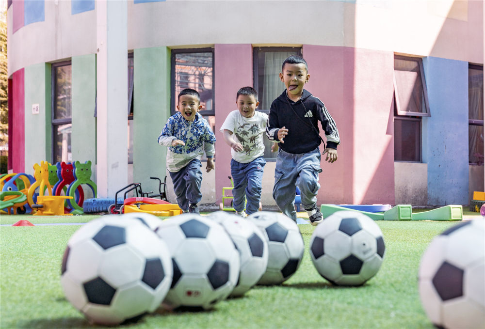 這是西藏自治區(qū)實驗幼兒園大班的孩子們進行足球訓(xùn)練(2019年8月22日攝)。新華社記者 孫非攝