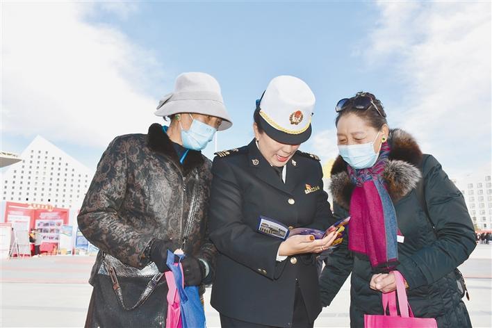 拉薩海關(guān)工作人員為過往群眾講解相關(guān)法律知識。王杰學(xué) 王雪 攝
