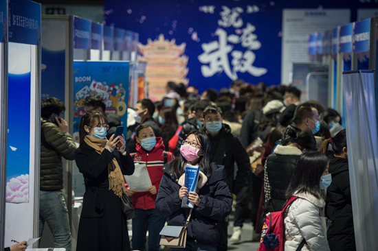 12月2日,2021屆全國(guó)普通高校畢業(yè)生就業(yè)創(chuàng)業(yè)促進(jìn)行動(dòng)(湖北·武漢)對(duì)接大會(huì)在洪山體育館正式啟動(dòng)。人民視覺供圖