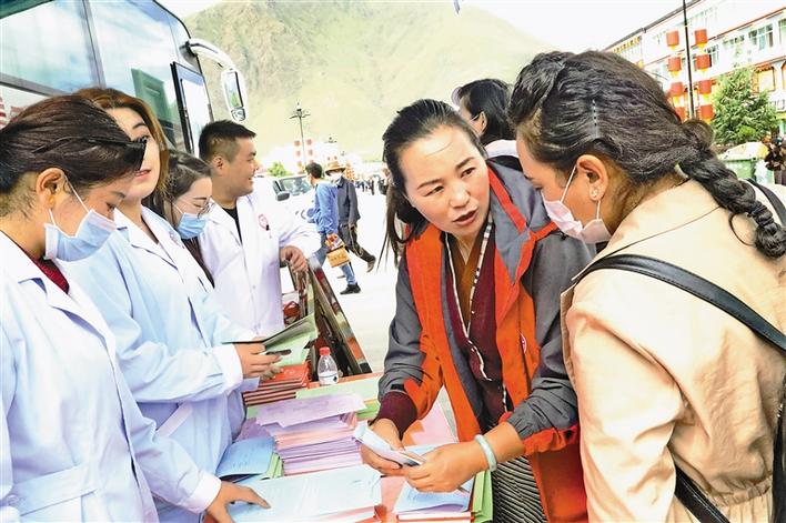 圖為山南市疾病預(yù)防控制中心工作人員在今年雅礱文化節(jié)期間,面向市民開展健康知識(shí)宣傳。段敏 攝