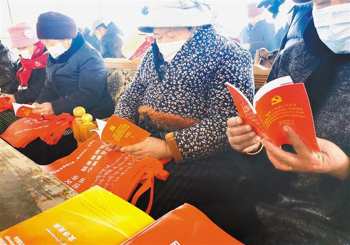 圖為社區(qū)群眾在閱讀黨的十九屆五中全會(huì)和中央第七次西藏工作座談會(huì)精神宣傳資料。段敏 攝