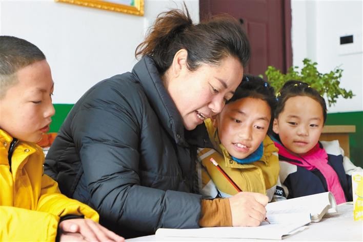 圖為寒假期間,德西拉措給福利院孩子輔導(dǎo)作業(yè)。桑鄧旺姆 攝
