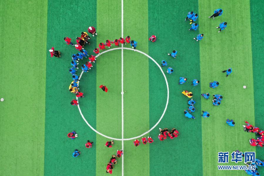 在西藏林芝市波密縣多吉鄉(xiāng)中心小學(xué),學(xué)生們?cè)趯W(xué)習(xí)西藏自治區(qū)級(jí)非遺項(xiàng)目“波央”的歷史(10月13日攝,無(wú)人機(jī)照片)。新華社記者 詹彥 攝