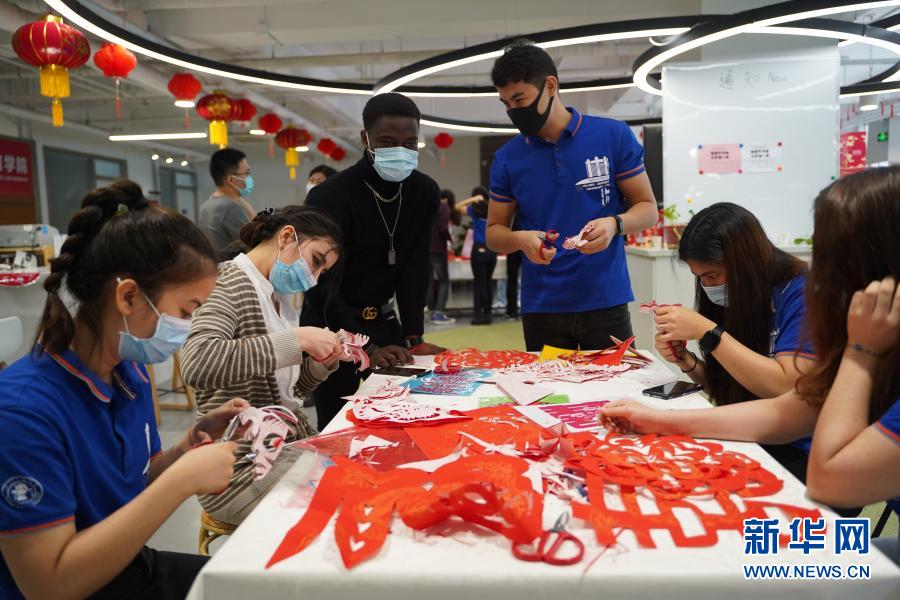 2月8日,北京交通大學(xué)留學(xué)生在體驗(yàn)剪紙。新華社記者 張浩波 攝