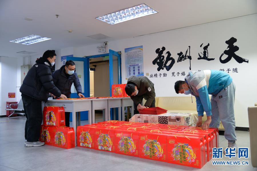 2月9日,北京交通大學(xué)輔導(dǎo)員和學(xué)生志愿者在整理為留校學(xué)生準(zhǔn)備的新春禮包。新華社記者 徐欽 攝