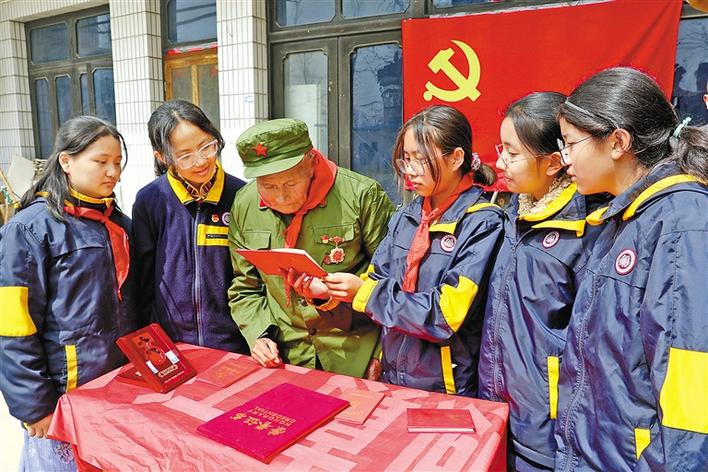 圖為南通西藏民族中學學生聽老紅軍講革命故事。 圖片由南通西藏民族中學提供