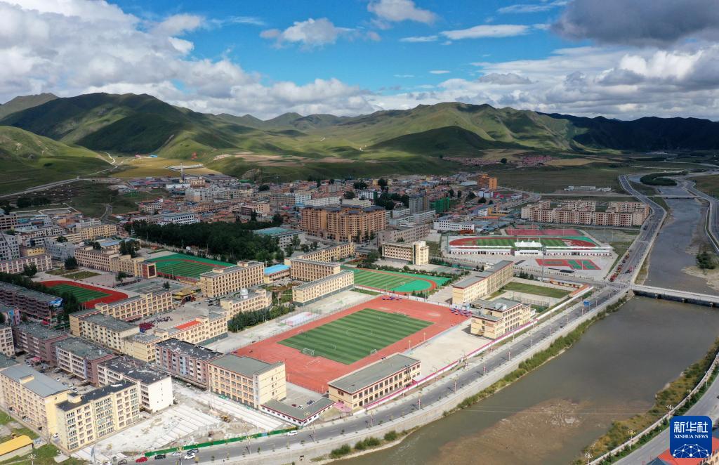 這是8月30日拍攝的碌曲縣藏族中學(xué)(無人機照片)。新華社記者 杜哲宇 攝