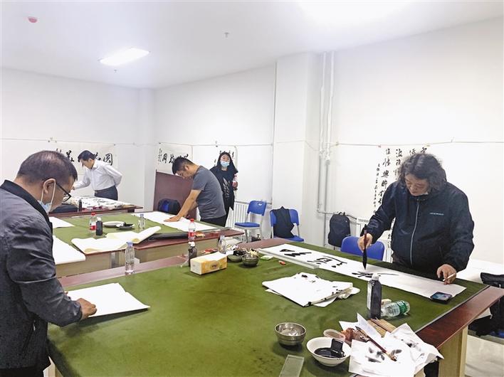 圖為北京和拉薩兩地書法家在拉薩師范高等??茖W校開展書法筆會交流。 記者 裴聰 攝