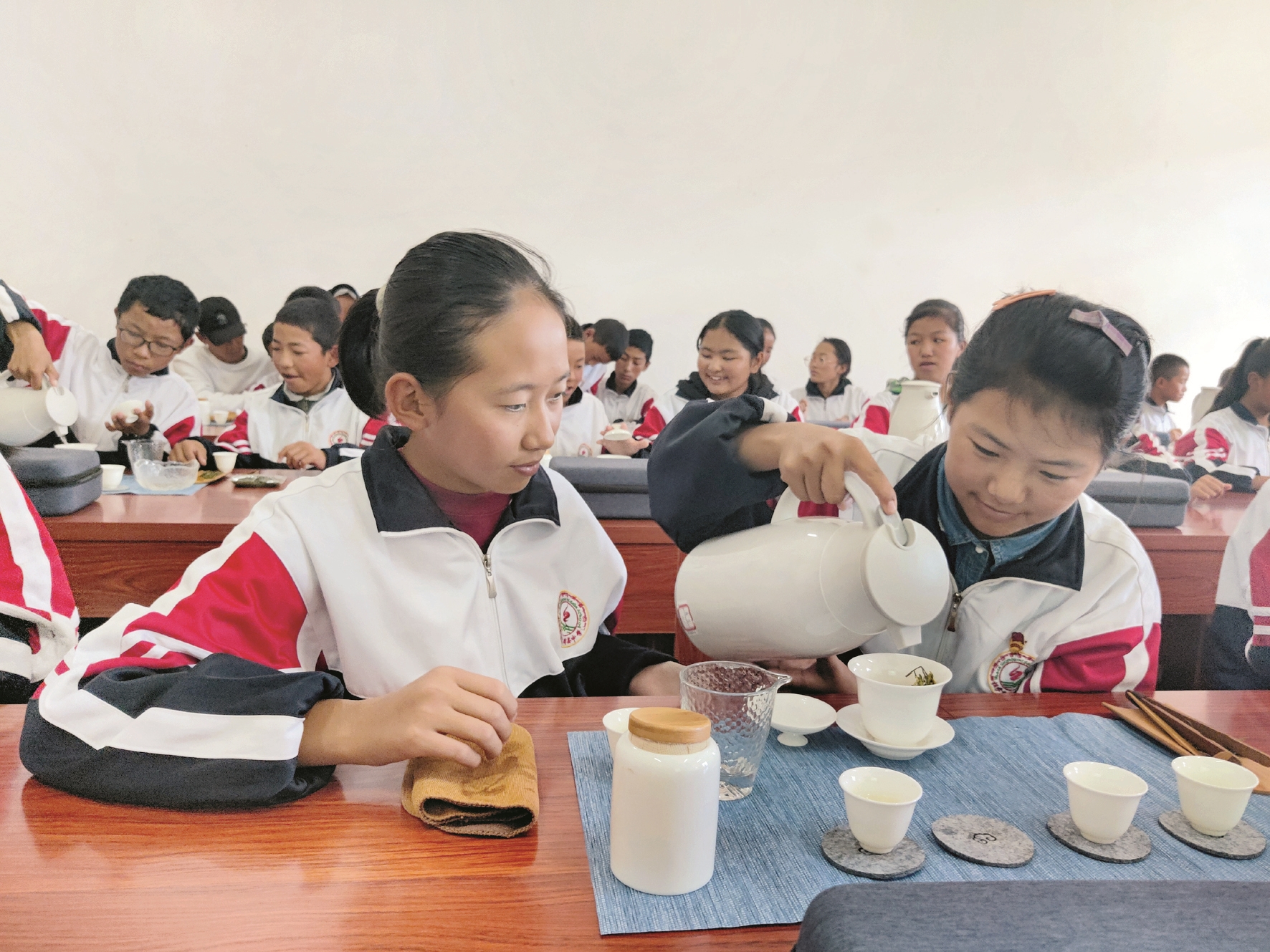 為了培養(yǎng)同學(xué)們的動(dòng)手能力,激發(fā)對(duì)中華茶文化的學(xué)習(xí)興趣,提高綜合文化素養(yǎng),拉薩市教育局青少年實(shí)踐基地定期組織學(xué)生開展茶文化學(xué)習(xí)實(shí)踐活動(dòng),在茶香氤氳中,學(xué)生們溫杯潔具、觀茶敬茶,感受茶的雅致魅力,體會(huì)茶文化的深厚內(nèi)涵。