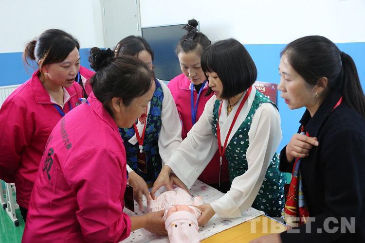 圖為西藏自治區(qū)第四屆職業(yè)技能大賽上育嬰組的選手賽前互相交流 攝影:王佳豪