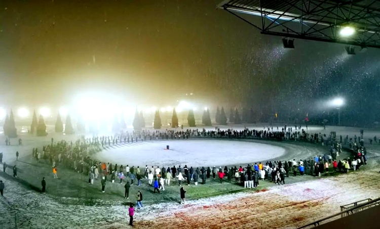 中國西藏網(wǎng)訊 紅燈高掛,年味已濃的古城咸陽,瑞雪紛紛。近日,還未離校返鄉(xiāng)的西藏民族大學(xué)學(xué)生們迎著紛揚的雪花,踩著歡樂的音樂,自發(fā)匯集在操場,將思鄉(xiāng)情融入和諧美好的鍋莊舞中。