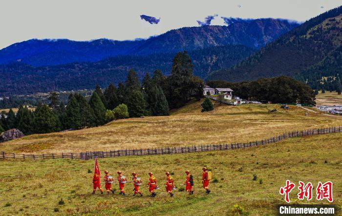 圖為森林消防隊(duì)員在魯朗國(guó)際小鎮(zhèn)景區(qū)巡護(hù)?!∥骼@拉翁 攝