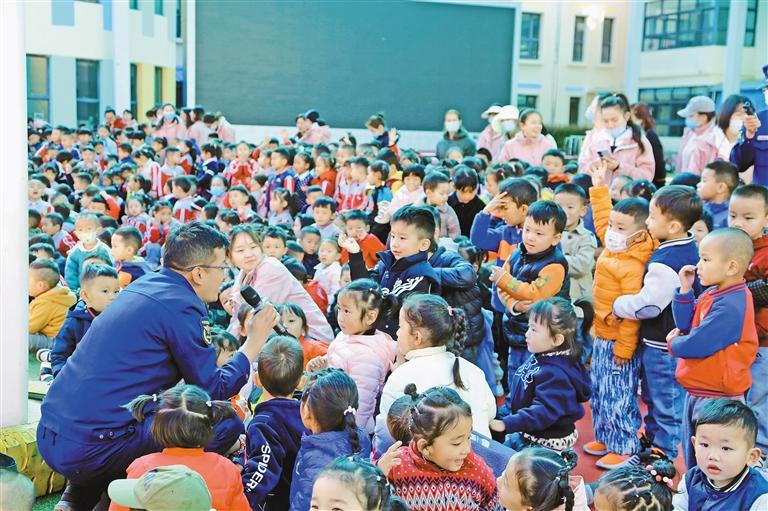 圖為消防工作人員講解消防安全知識。