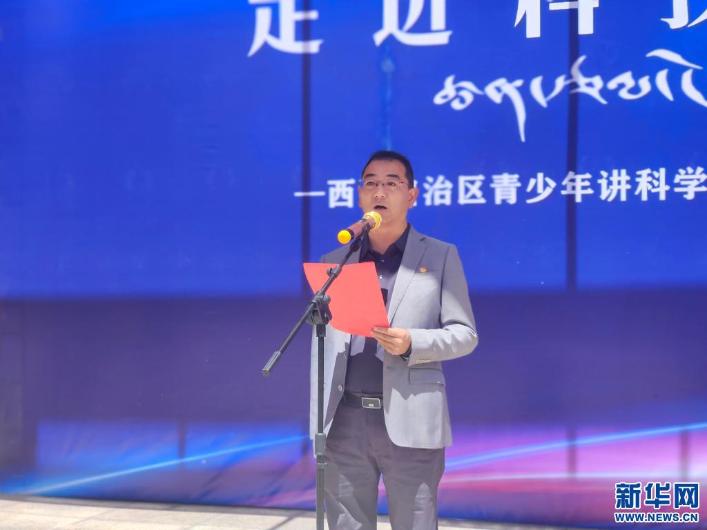 西藏青少年實踐教育基地主任黃征在啟動儀式上致辭(5月23日攝)。新華社記者 劉洲鵬 攝