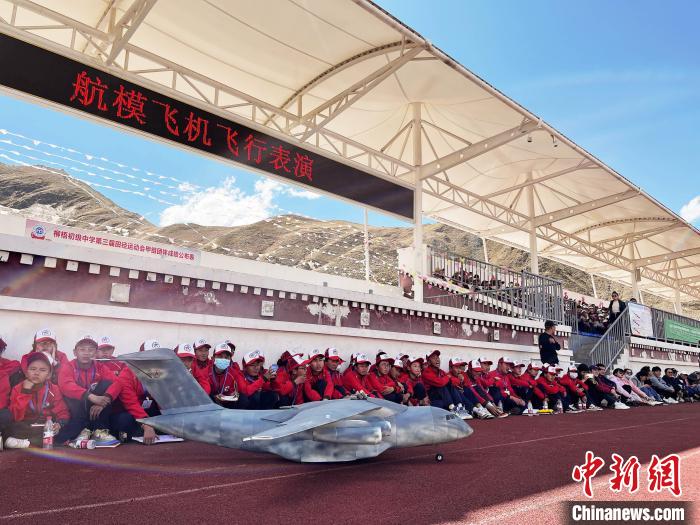 圖為學生們參與航模飛機飛行表演?!∑照?攝