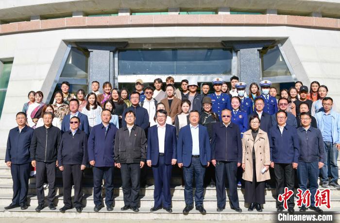圖為簽約儀式上媒體單位負(fù)責(zé)人跟西藏民族大學(xué)的實(shí)習(xí)生合影。 貢嘎來(lái)松 攝